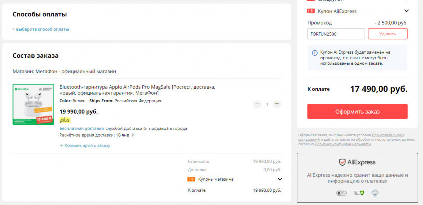 — Беспроводные наушники Apple AirPods Pro MagSafe за 17490₽ с промокодом: FORFUN2500 вместо 19180₽.