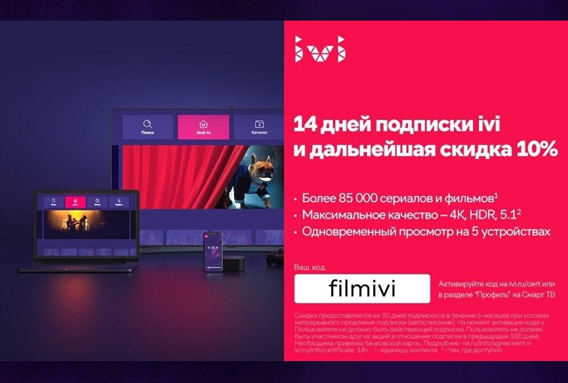 45 дней бесплатной подписки в онлайн-кинотеатр ИВИ