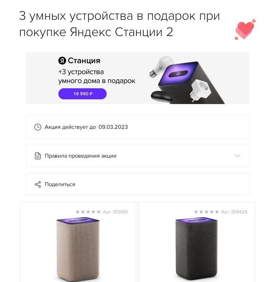 Приобретайте Яндекс Станцию 2 и получайте 3 устройства умного дома в подарок. Акция проводится по