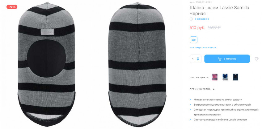 — Шапка-шлем Lassie Samilla Чёрная 718807-9991 за 510₽ вместо 929₽;