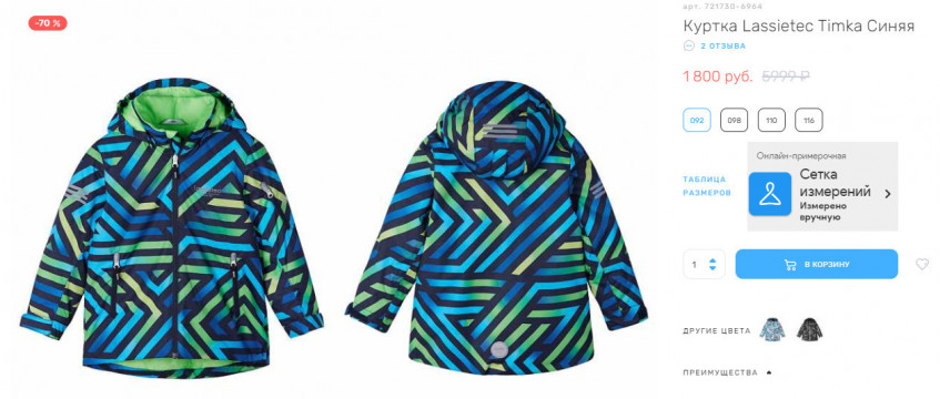 — Куртка Lassietec Timka Синяя 721730-6964 за 1800₽ вместо 2990₽;