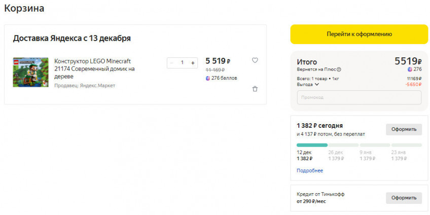 — Конструктор LEGO Minecraft 21174 Современный домик на дереве за 5519₽ с промокодом: MARKET20 вместо 6572₽;