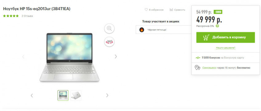 Ноутбук HP 15s-eq2013ur 3B4T1EA 8/512 с отличной скидкой в Эльдорадо. По такой же цене в М.Видео и СберМегаМаркет. Обычная цена от 54999₽. Процессор AMD Ryzen 5 5500U, время работы до 9 часов, вес 1.69 кг.