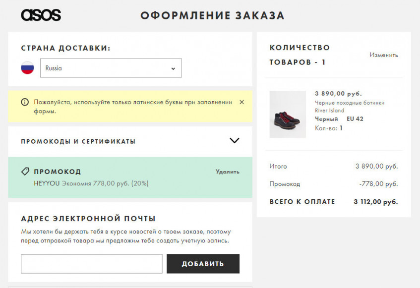 На ASOS хорошие цены на обувь. А при первом заказе применяй промокод на доп. скидку 20%, цены будут ещё ниже.
