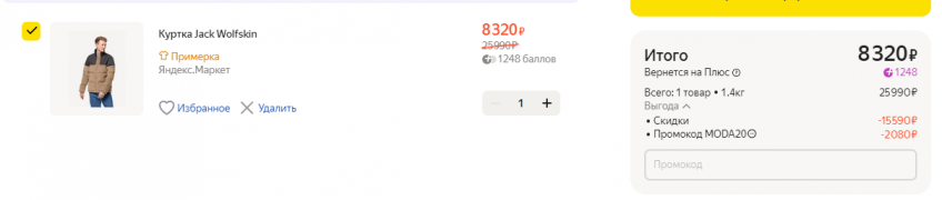 Одежда и обувь Jack Wolfskin со скидками по промокоду MODA20 на Яндекс.Маркет. Одежда и обувь известного бренда уже идет со скидками, а с применением промокода цены очень низкие.