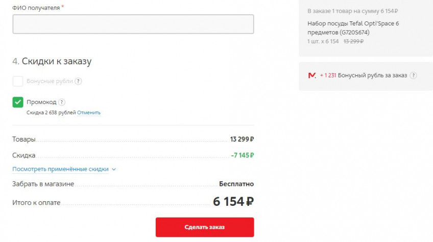 — Набор посуды Tefal Opti’Space G720S674, 6 предметов с промокодом: POSUDA30 по цене 6154₽, чуть дороже в Эльдорадо с промокодом: 3030 за 6299₽. В других магазинах стоимость от 7992₽;