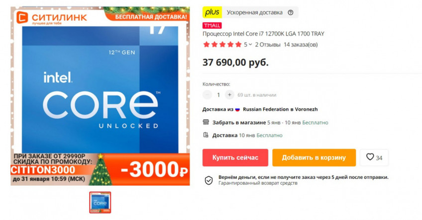 - Процессор Intel Core i7 12700K с промокодом: CITITON3000 за 34690₽, вместо 37690₽.
