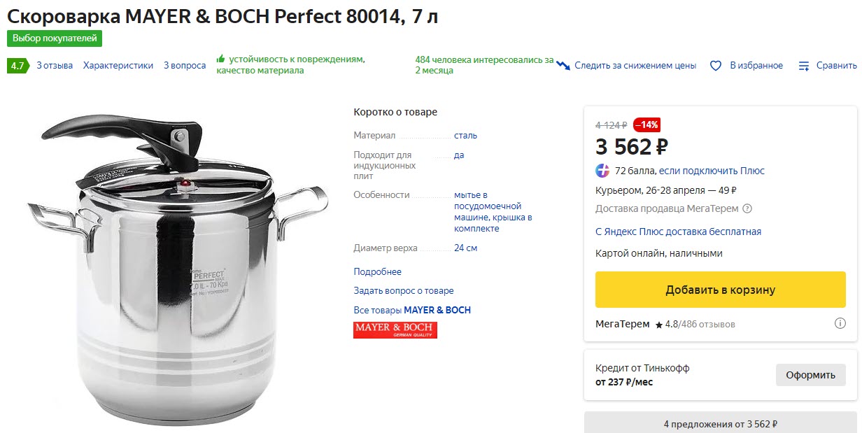 Подходит для всех видов плит, имеет объём 7 л, изготовлена из стали и её можно мытье в посудомоечной машине. Немного дороже на Яндекс.Маркет за 3561₽.