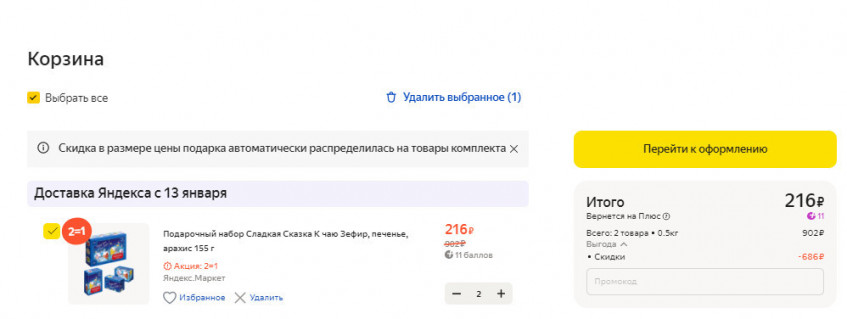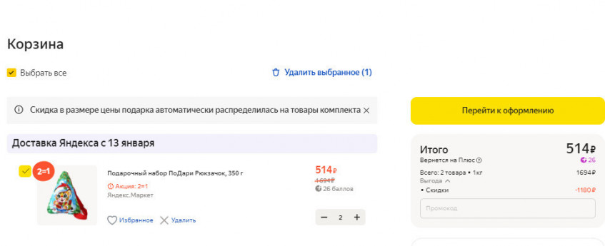 На Яндекс.Маркет действует акция 2=1 на сладкие подарки до 20 января. Праздники продолжаются!