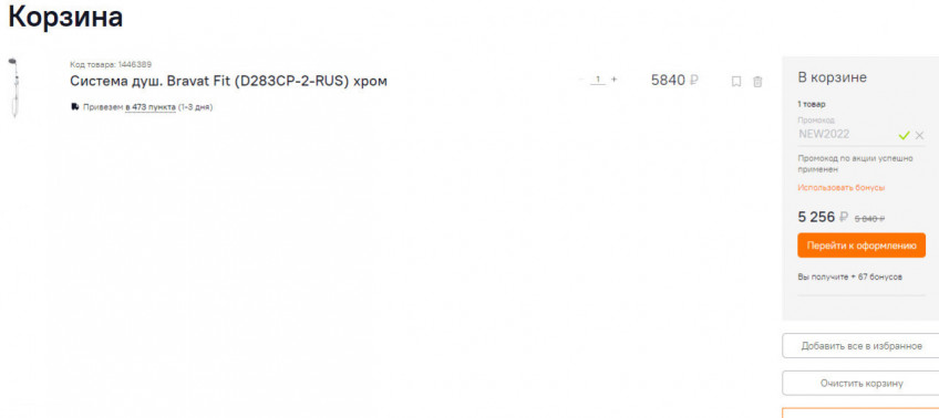 — Система душевая Bravat Fit D283CP-2-RUS хром за 5256₽ с промокодом: NEW2022 вместо 6149₽;