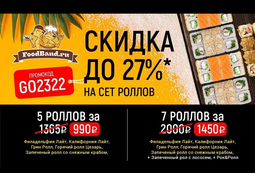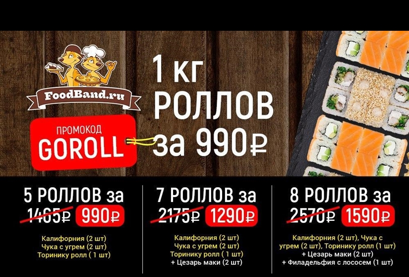 Предложение для жителей Москвы и только на первый заказ. В ресторане FoodBand обычно делают скидки