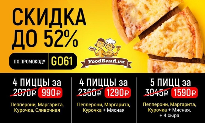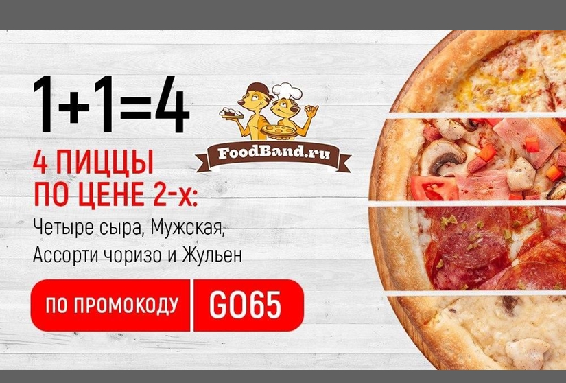 Ловите новый промокод в сервисе доставки FoodBand! На этот раз можно заказать целых 4 пиццы