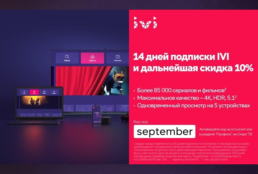 Сделали небольшую подборку промокодов в онлайн-кинотеатрах. Вы узнаете, как получить подписку в сервисах IVI и