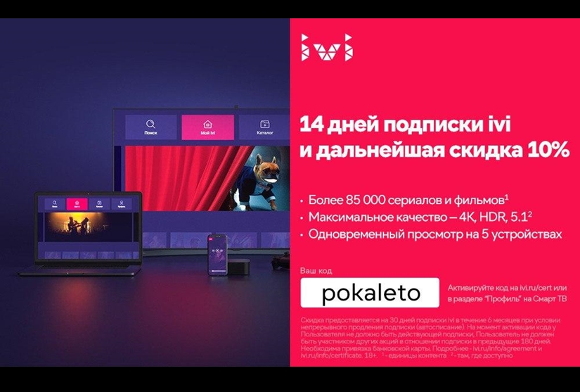 С удовольствием расскажем о новом промокоде в онлайн-кинотеатре ivi. 14 дней подписки получат все новые