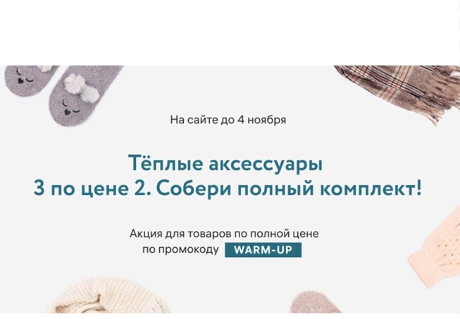 Акция 1+1=3 на тёплые аксессуары по промокоду в Gloria Jeans