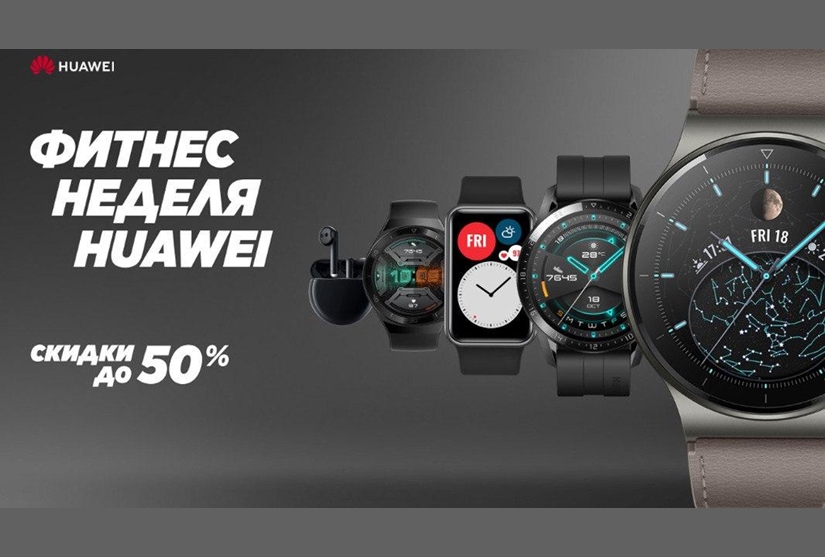 На сайте Huawei вовсю проходит акция «Фитнес неделя». Магазин предлагает скидки до 50% и приятные