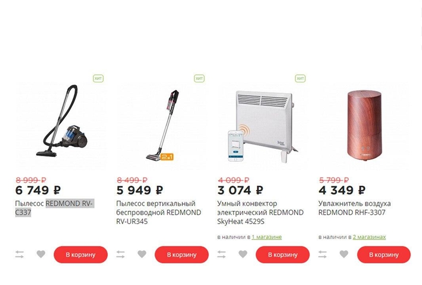 Интернет-магазин Redmond представил очередную распродажу электроники. Здесь можно выбрать полезную технику для дома — пылесосы,