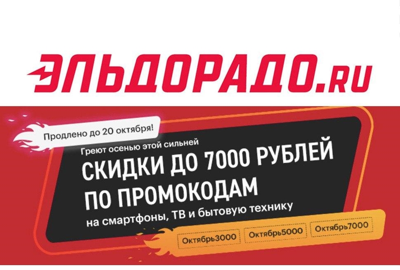 У нас есть новости! Эльдорадо продлили действие своих промокодов на скидку до 7000₽, а М.Видео