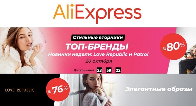 Сегодня Али запустил акцию одного дня «Стильный вторник». В каталогах найдёте немало одежды и обуви