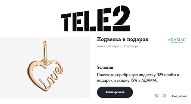 До 31 августа любой абонент Теле2 может забрать украшение от Адамас бесплатно. Переходите по ссылке