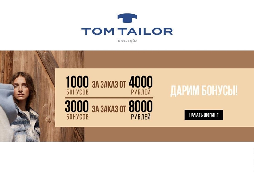 Tom Tailor запустил новую акцию и дарит бонусные баллы за покупки. Так, при заказе на