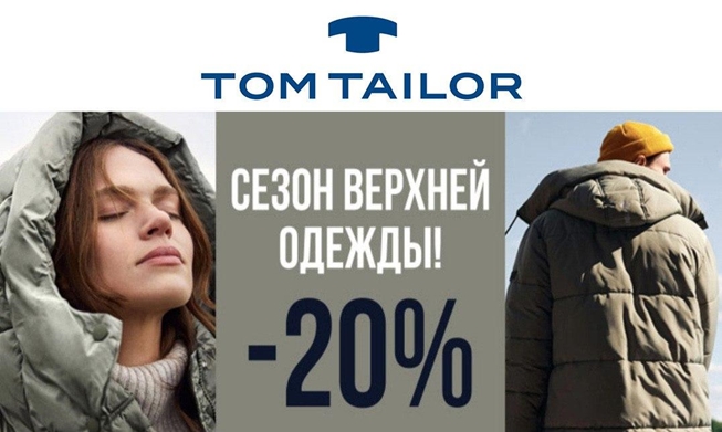 Одежда, обувь и аксессуары с доп. скидкой 20% в Tom Tailor