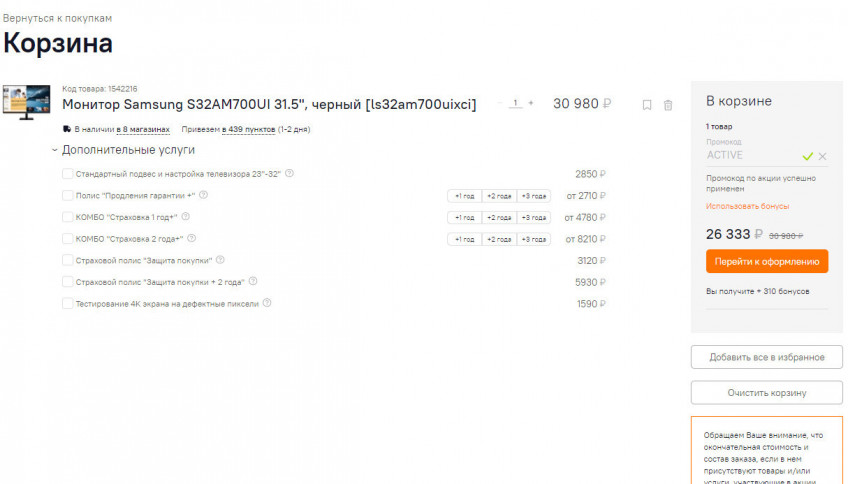— Монитор 31.5″ Samsung S32AM700UI ls32am700uixci за 26333₽ с промокодом: вместо 30599₽.